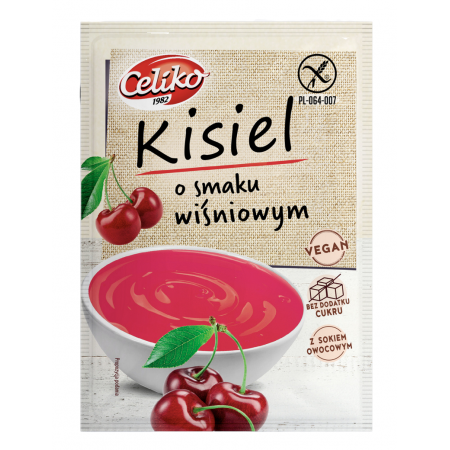 KISIEL O SMAKU WIŚNIOWYM BEZ DODATKU CUKRÓW BEZGLUTENOWY 40 g - CELIKO CELIKO (batony, galaretki, mieszanki do wypieków) 1,28 zł