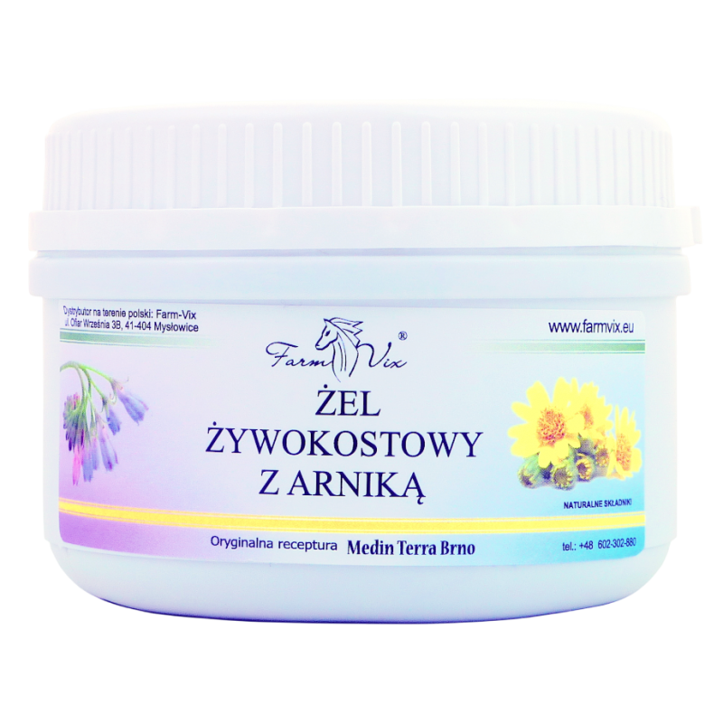 OPISŻel żywokostowy z arniką - przynosi ulgę w stanach napięcia mięśniowego. Można go stosować do masażu terapeutycznego oraz po wysiłku fizycznym, stłuczeniach i terapi po złamaniach.