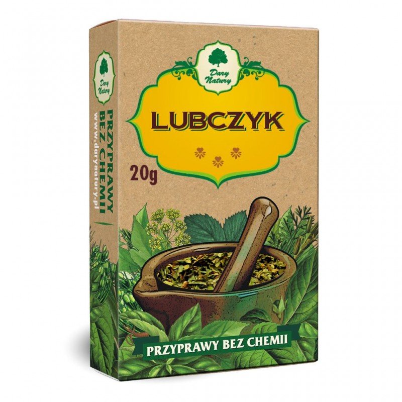 OPISLubczyk jest przyprawą bardzo mocną, dlatego stosuje się go w małych ilościach. Przyprawia się nim potrawy z fasoli, zupy jarzynowe, kartoflankę, rosoły, poprawia zapach mięsa, potraw rybnych i sosów.NIE ZAWIERA GLUTENUSKŁADNIKIlubczyk 100%