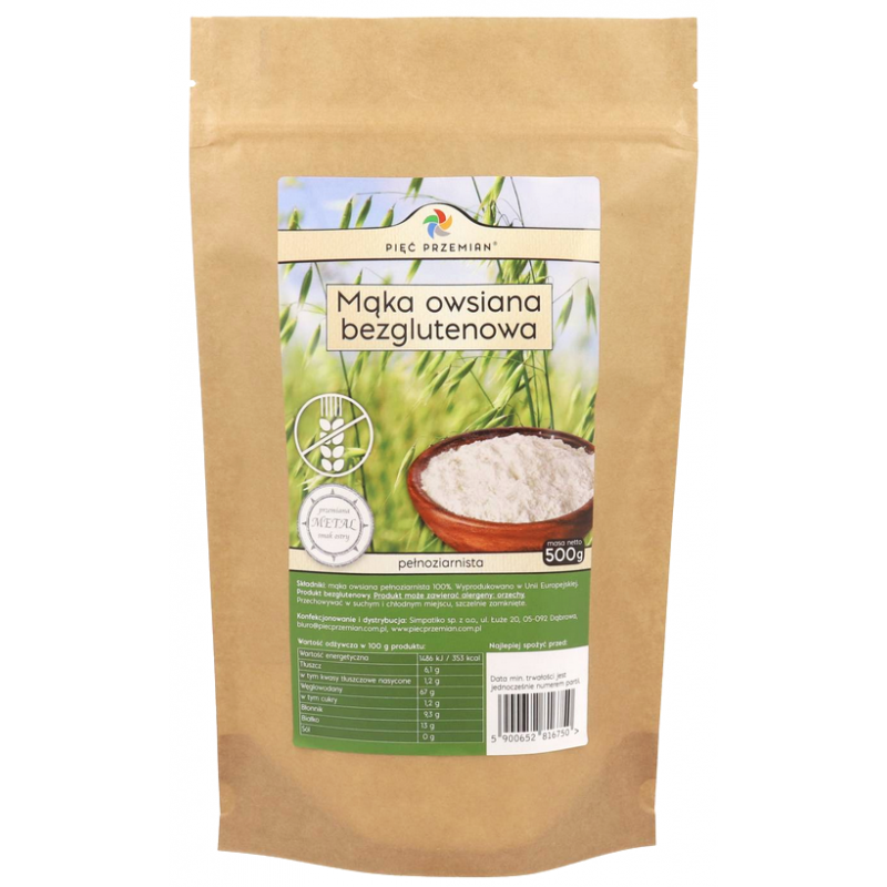 PIĘĆ PRZEMIAN Mąka owsiana bezglutenowa pełnoziarnista 500g