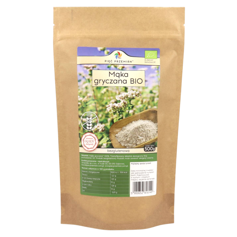 PIĘĆ PRZEMIAN Mąka gryczana pełnoziarnista BIO bezglutenowa 500g