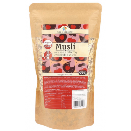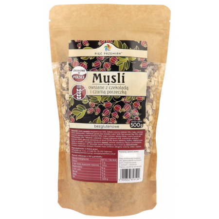 MUSLI OWSIANE CZEKOLADOWE Z CZARNĄ PORZECZKĄ BEZ DODATKU CUKRÓW... PIĘĆ PRZEMIAN (produkty spożywcze) 18,91 zł