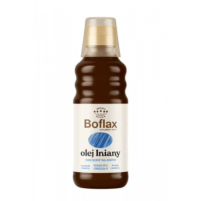 OPISOlej Lniany BOFLAX® do diety dr Budwig jest olejem tłoczonym na zimno ze starannie wyselekcjonowanych nasion lnu. Ze względu na wysoką, ponad 50% zawartość kwasu alfa-linolenowego, stanowi najbogatsze, znane roślinne źródło tego kwasu należącego do rodziny Omega-3. W większości spożywanych olejów roślinnych zawartość kwasów Omega-3 wynosi do 10%. Olej Lniany BOFLAX® jest wnikliwie badana przez doświadczonych specjalistów w nowocześnie wyposażonym, certyfikowanym laboratorium badawczym IWNiRZ. Surowce do produkcji pochodzą od sprawdzonych przez Instytut wieloletnich dostawców oraz upraw własnych. Kontrolowany jest każdy etap wytwarzania oleju. Badania wykonywane są dla każdej serii surowca wg najwyższych standardów zarządzania bezpieczeństwem żywności ISO 22000:2006.