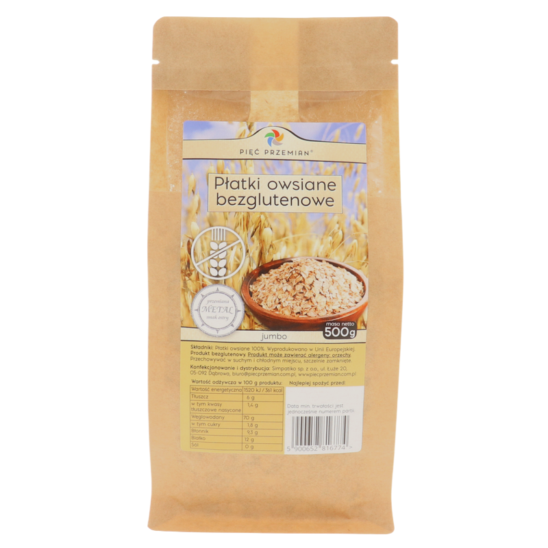 PŁATKI OWSIANE BŁYSKAWICZNE BEZGLUTENOWE BIO 500 g - PIĘĆ PRZEMIAN PIĘĆ PRZEMIAN (produkty spożywcze) 10,82 zł
