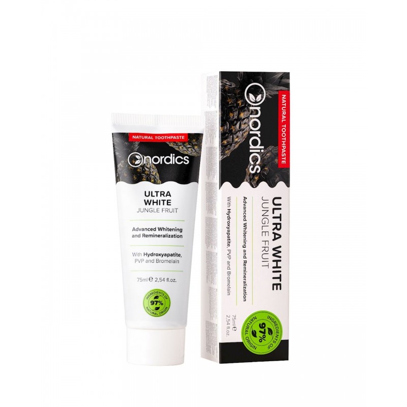 PASTA DO ZĘBÓW ULTRA WHITE JUNGLE FRUIT BEZ FLUORU ECO 75 ml - NORDICS