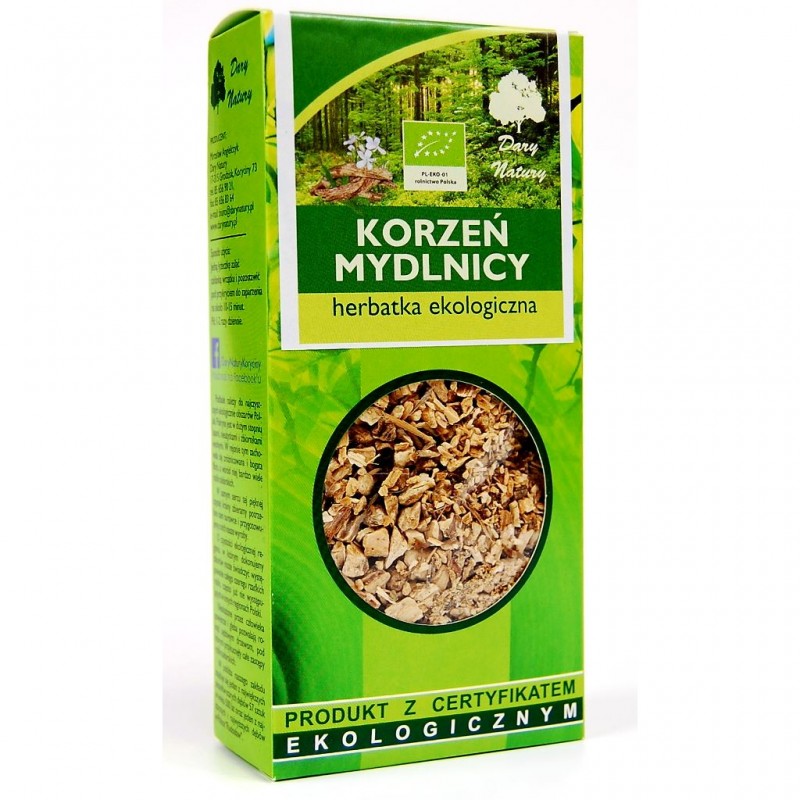 OPISKorzeń mydlnicy dzięki zawartych w nim saponinach jest naturalnym środkiem wspaniale nadającym się do pielęgnacji i poprawy kondycji włosów. Polecany również jako naturalny zamiennik proszku do prania.SPOSÓB UŻYCIAJedną łyżeczkę wymieszaj ze szklanką wrzącej wody i pozostaw pod przykryciem na ok. 10-15 minut. Pij 1-2 razy dziennie.SKŁADNIKIkorzeń mydlnicy* 100%*produkt rolnictwa ekologicznego